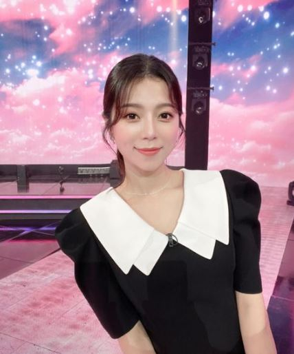 공개된 사진에는 양지은이 화려한 무대 앞에서 단정한 옷을 입고 미소 짓고 있는 모습이 담겼다.