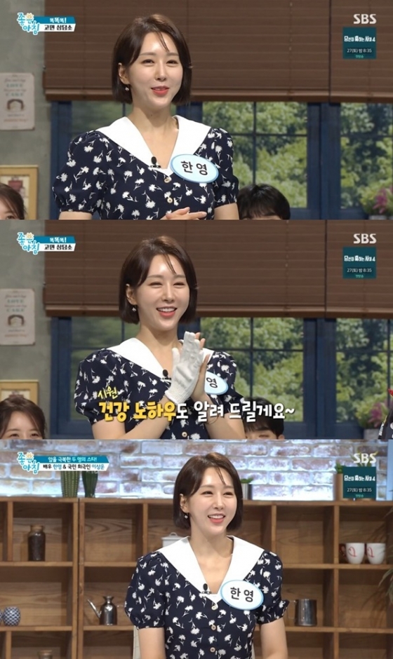 한영은 25일 오전 방송된 SBS '좋은 아침'에 출연했다. 이날 '고민 상담소'에 암을 극복한 스타로 등장한 한영은 "최근에 결혼을 했다. 바쁜 나날을 보내고 있는데 오랫동안 준비한 브랜드 사업을 론칭했다"고 근황을 전했다. 한영은 지난 4월 가수 박군과 결혼해 많은 관심을 받았다.