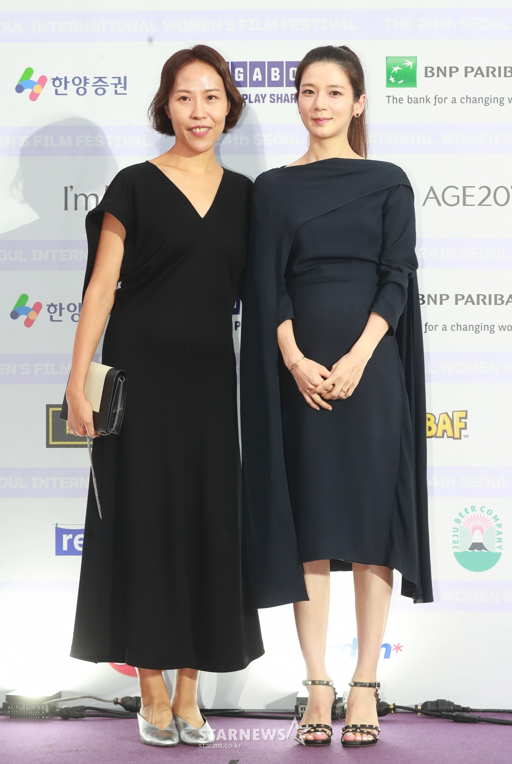 김진아 감독, 배우 김보령이 25일 오후 서울 마포구 문화비축기지에서 진행된 제24회 서울국제여성영화제 개막식에 참석해 포즈를 취하고 있다. /2022.08.25