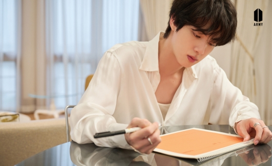 특히 무언가를 집중해서 쓰는 진의 옆모습은 명화 속 한 장면처럼 아름다웠다.