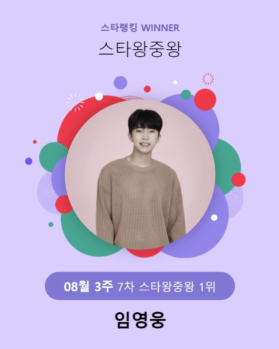 임영웅은 8월 19일 오후 3시 1분부터 8월 26일 오후 3시까지 진행된 8월 3주(7차) 스타왕중왕 랭킹 투표에서 1위에 올랐다.
