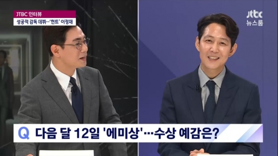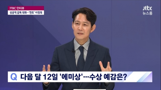 이정재는 넷플릭스 '오징어게임'으로 미국 에미상 남우주연상 후보에 올랐다. 오대영 앵커는 "남우주연상 수상자로 거론되던데 어떻게 생각하냐"고 물었다.