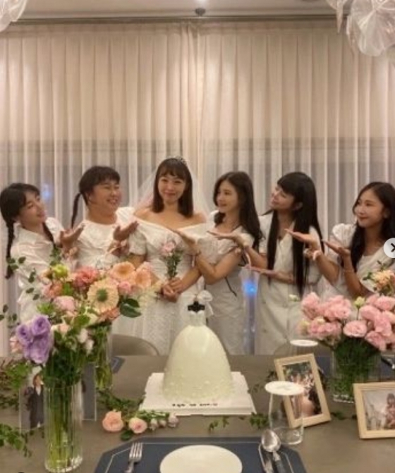 공개된 사진에는 오나미의 결혼을 축하하기 위해 브라이덜 샤워를 준비한 동료들의 모습이 담겨 있다. 사진 속 오나미는 순백의 웨딩드레스를 입고 미모를 뽐내고 있다. 개그우먼 김민경과 허민, 박소영, 개그맨 이수근의 아내 박지연, 이미림 작가도 화이트로 옷을 맞춰 입고 오나미를 향한 우정을 과시했다.