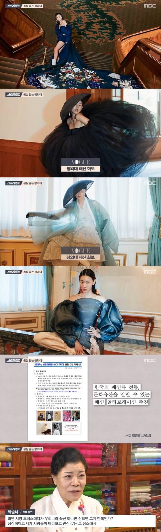 보그 코리아는 지난 22일 '청와대 그리고 패션'이라는 타이틀로 화보를 공개했다. 화보에는 엄중한 분위기의 청와대 건물 내부에서 모델 한혜진, 김원경, 김성희, 오송화, 이애리 등이 현대식으로 재해석한 한복을 입고 다양한 포즈를 취하는 모습이 담겼다. 이 중에는 어깨선과 다리를 노출한 과감한 의상도 있었고, 하얀색 한 한복은 일본인 아방가르드 디자이너 류노스케 오카자키가 디자인한 것으로 알려져 논란이 일었다.