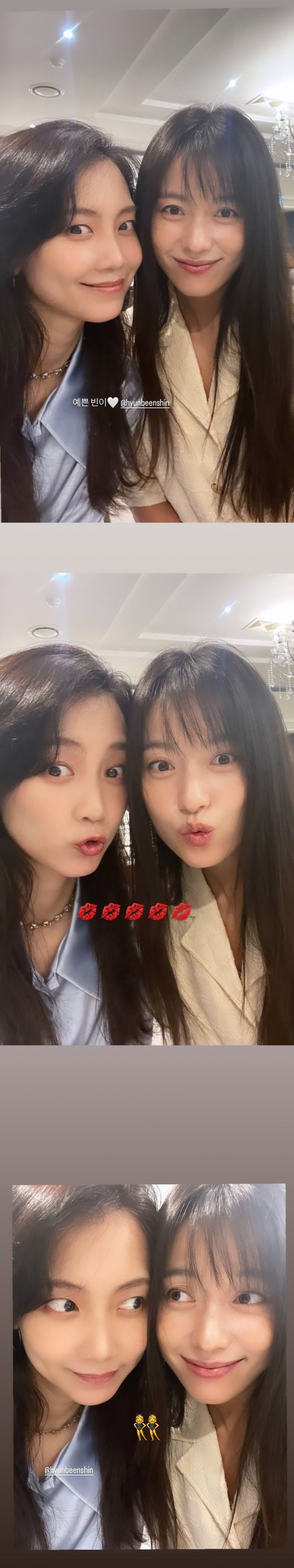 공개된 사진 속에는 지인의 결혼식에 함께 참석한 신현빈과 함께 카메라를 응시하고 있는 한효주의 모습이 담겨있다. 얼굴을 맞대고 장난기 가득한 표정을 지은 두 사람의 얼굴이 묘하게 닮아보인다. 특히 두 사람의 우정이 훈훈함을 안긴다.