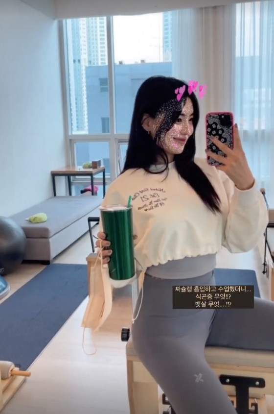 전다빈은 "짜슐랭 흡입하고 수업했더니. 식곤증 무엇? 뱃살 무엇?"이라고 적었다.