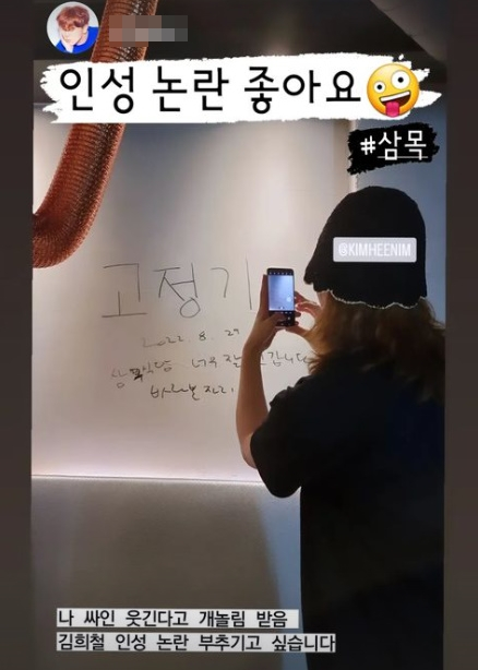 김희철은 30일 자신의 인스타그램 스토리에 "인성 논란 좋아요"라는 글이 담긴 사진을 게재했다.