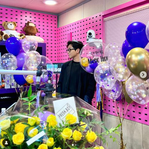 가수 딘딘이 라디오 '딘딘의 뮤직하이' 2주년 파티를 즐겼다.