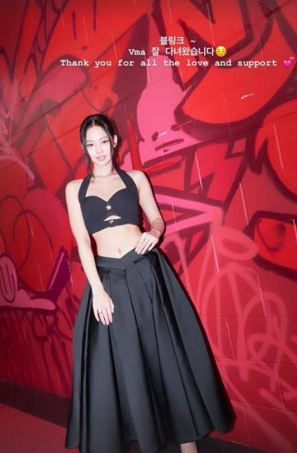 제니는 8월 31일 자신의 인스타그램 스토리에 "블링크 Vma 잘 다녀왔습니다. Thank you for all the love and support♥"라는 글과 함께 사진을 다수 올렸다.