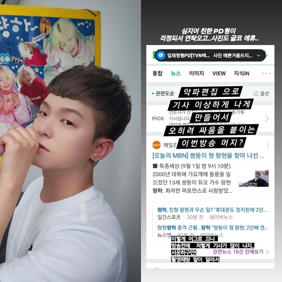 사진에는 포털사이트에 올라온 '특종세상' 량하 관련 기사가 담겨있다. 지난달 31일 공개된 MBN '특종세상' 선공개 영상에서 량하는 형의 근황을 묻는 제작진에게 "2년째 연락이 안 되고 있다. 나도 홀로서기 하면서 혼자 다니고 있다"고 답했다.