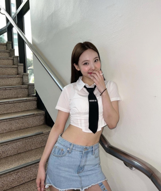 공개된 사진에는 아사진에는 크롭티를 입고 개미허리를 자랑하고 있는 나연의 모습이 담겨있다. 흰색 카라 크롭티에 넥타이를 맨 나연은 발랄한 분위기를 자아내며 다양한 포즈를 취했다.