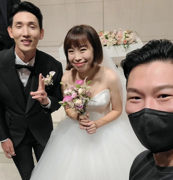 김시덕은 4일 오후 자신의 공식 인스타그램에 두 사람과 함께 찍은 사진과 "너무 너무 예쁘고 착한 나미 결혼 하는 날. 연기력으로 안 예쁜척 한거지. 실제로는 너무 예쁜 오나미 영원히 행복하길. 스울사는 서위트파파"라고 밝혔다.