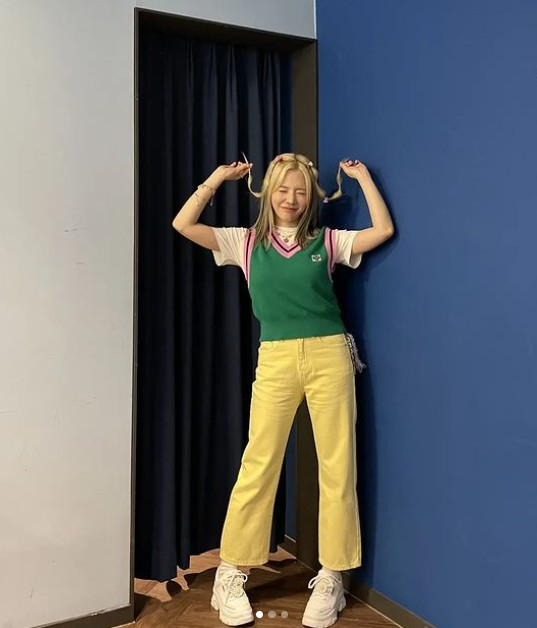 공개된 사진에는 써니가 화려한 컬러감의 의상을 소화하며 발랄한 표정으로 머리를 양쪽으로 당기는 모습이 담겼다. 만화 속 주인공 같은 상큼 발랄한 비주얼에 흐뭇한 미소를 자아냈다.