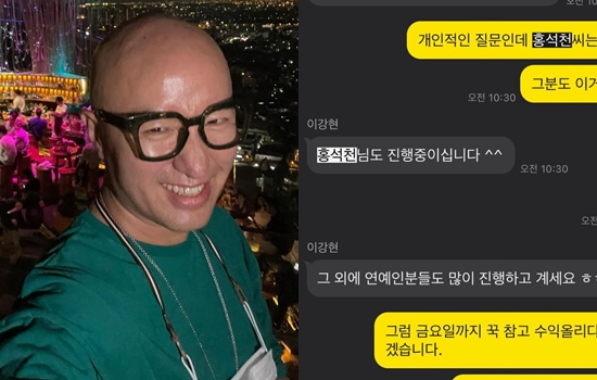 이와 함께 그는 제보받은 채팅 내용을 공유했다. '이강현'이라는 인물은 "개인적인 질문인데 홍석천씨는 잘 아세요? 그분도 이거 하시나요?"라는 질문에 "홍석천님도 진행중이십니다. 그 외에 연예인분들도 많이 진행하고 계세요"라고 답했다.
