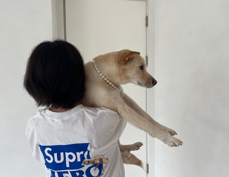 이를 본 네티즌들은 "언니랑 슈퍼(반려견) 너무 예뻐요 귀여워요", "슈퍼 정말 사랑스럽고 귀여워요", "아름다운 언니" 등의 반응을 보였다.