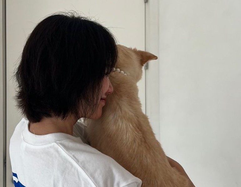 가수 겸 배우 엄정화가 반려견을 끌어안고 행복한 일상을 공개했다.