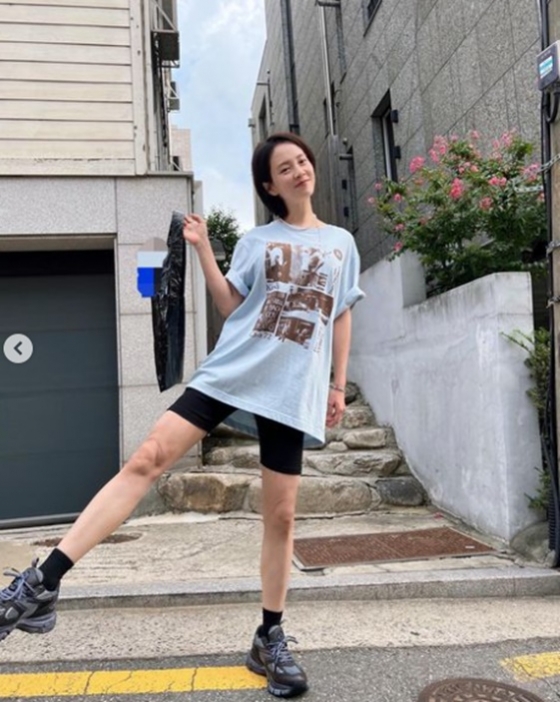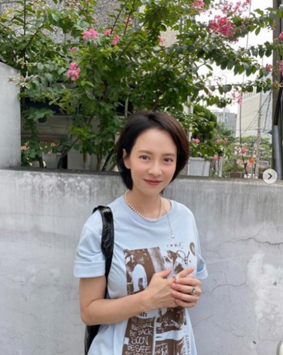 공개 된 사진 속 송지효는 짧은 단발 스타일을 자랑하며 캐주얼한 의상을 입고 포즈를 취하고 있다.