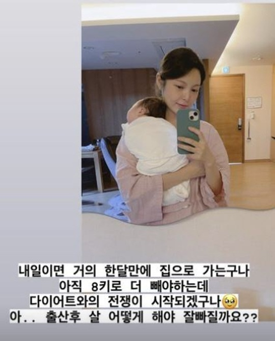 14일 금비는 자신의 인스타그램 스토리에 "내일이면 거의 한 달 만에 집으로 가는구나. 아직 8kg 더 빼야 하는데 다이어트와의 전쟁이 시작되겠구나. 아, 출산 후 살 어떻게 해야 잘 빠질까"라는 글과 사진을 게재했다.