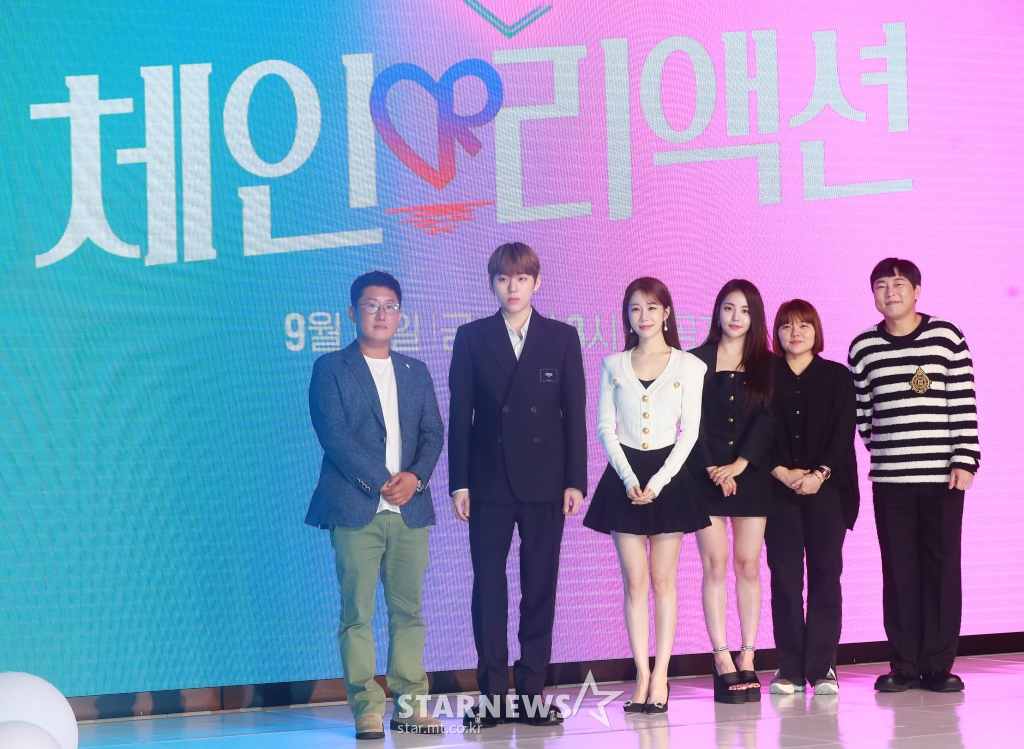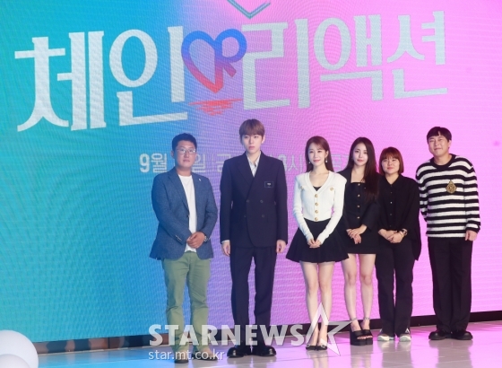 연예방송'체인리액션, 믿고 보세요'[★포토]발행 : 2022.09.14 ・ 12:28이동훈 기자김용대 PD, 지코, 유인나, 유정, 조미선 작가, 이진호가 14일 오전 서울 여의도 콘래드호텔에서 진행된 쿠팡플레이 예능 '체인리액션' 제작발표회에 참석해 포즈를 취하고 있다.지상낙원 사이판으로 떠난 8명의 남녀가 체인에 묶여 밤과 낮을 함께 보내는 짜릿한 리얼 데이팅 예능 '체인리액션'은 오는 16일 공개된다. /2022.09.14<저작권자 © 스타뉴스, 무단전재 및 재배포 금지>체인리액션추천 기사이동훈 기자기자홈좋아요 연예-방송의 인기 급상승 뉴스연예-방송의 최신 뉴스