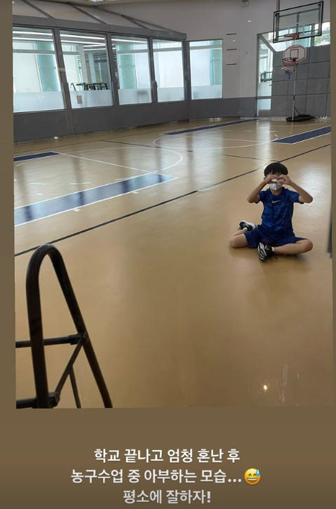 강수정은 지난 13일 자신의 인스타그램 스토리를 통해 "학교 끝나고 엄청 혼난 후 농구 수업 중 아부하는 모습. 평소에 잘하자"란 글을 게재했다.
