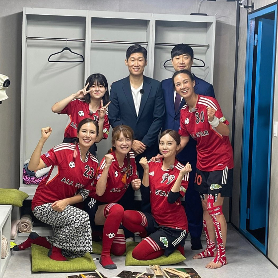 공개된 사진에는 지난 14일 방송된 SBS '골 때리는 그녀들'(이하 '골때녀')의 올스타전에 박선영, 에바, 김승혜, 아유미 등과 레드팀으로 출전한 서기의 모습이 담겼다. 박지성까지 만난 서기의 얼굴에는 미소가 가득했다.