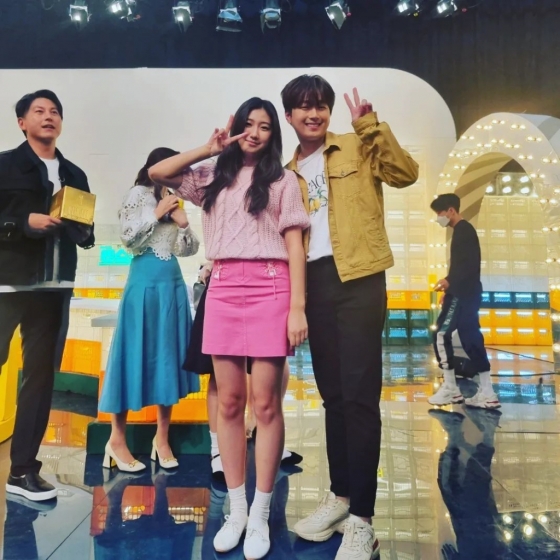 김정임은 15일 자신의 인스타그램에 "화리와 찬원 씨 투샷"이라는 글과 함께 딸 화리 양과 이찬원이 함께 찍은 사진을 공개했다.