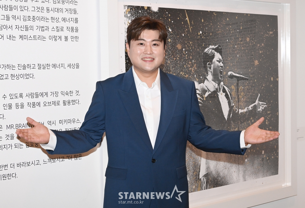가수 김호중이 16일 오후 서울 성동구 성수동 갤러리아포레 더 서울라이티움에서 열린 2022 김호중 展 '별의 노래' 오픈 행사에서 포즈를 취하고 있다.