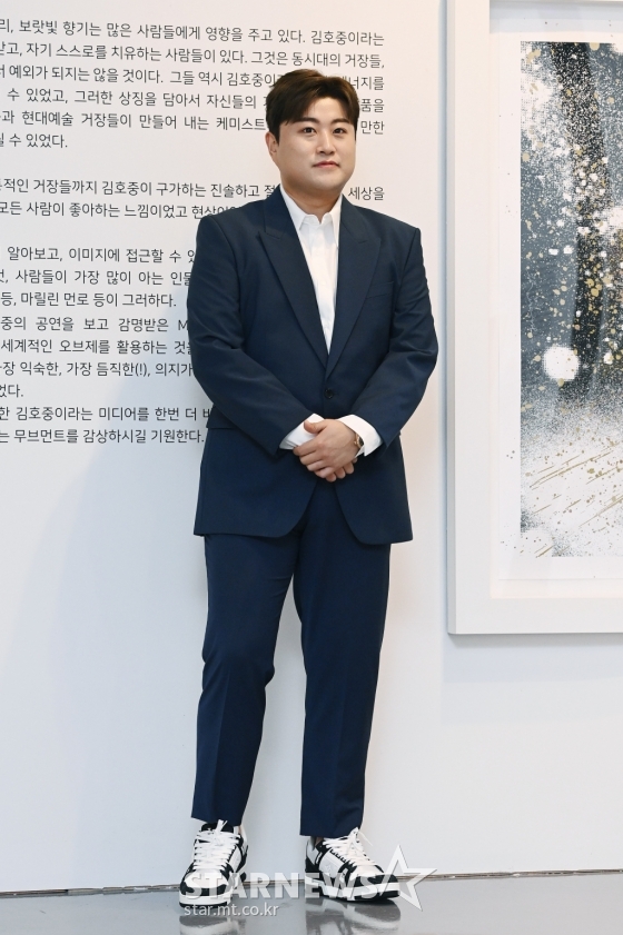 가수 김호중이 16일 오후 서울 성동구 성수동 갤러리아포레 더 서울라이티움에서 열린 2022 김호중 展 '별의 노래' 오픈 행사에서 포즈를 취하고 있다.