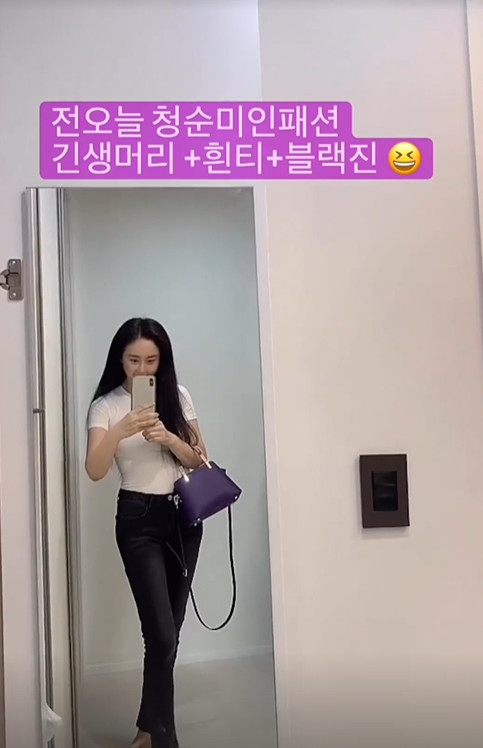 함소원은 지난 16일 자신의 인스타그램을 통해 "전 오늘 청순미인 패션. 긴 생머리, 흰티, 블랙진"이란 글을 게재했다.