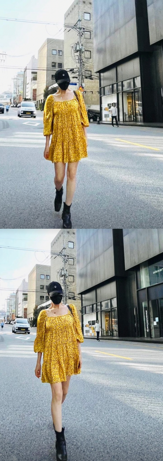 공개된 사진에는 노란 원피스를 입은 김혜수가 거리를 활보하는 모습이 담겨 있다. 김혜수는 검은 모자에 마스크까지 써 얼굴이 전혀 보이지 않음에도 남다른 비율로 연예인 포스를 풍겨 감탄을 자아냈다.