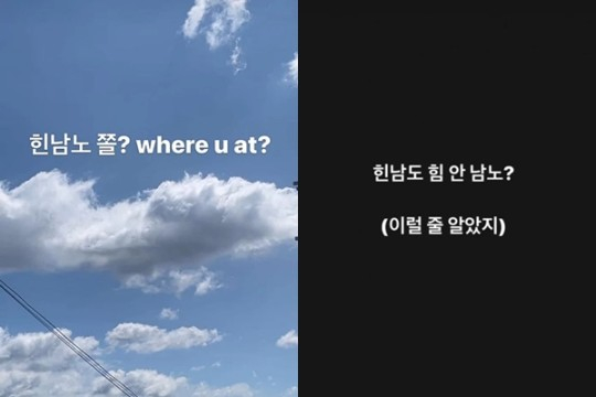 스윙스는 최근 자신의 인스타그램 스토리(24시간 후 게시물이 삭제되는 기능)에 하늘이 담긴 사진을 게재했다. 제11호 태풍 힌남노가 거쳐간 뒤 맑게 갠 하늘이다.