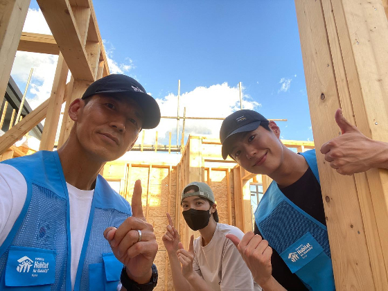 션은 20일 자신의 인스타그램에 "KR 잘될거야,대한민국! 전남 구례로 8호집 집 짓기 봉사. 저와 우리 언노운크루 배우 윤세아님, 배우 박보검, 장호준 선수, 815런 페이서이였던 김진만 대표,그리고 윤세아님 매니저 최한솔. 그렇게 7명의 봉사자가 맡겨준일 130%를 달성하며 열심히 집을 지었습니다"고 시작하는 글과 여러 장의 사진을 게재했다.