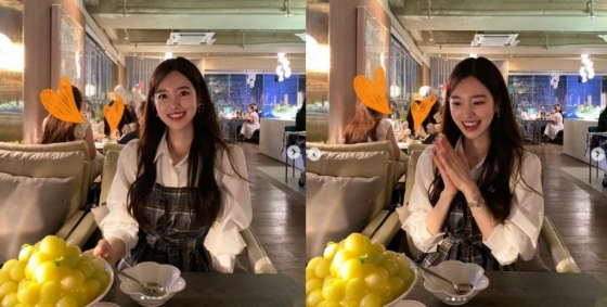 공개된 사진에는 진세연이 과일 빙수를 보며 설레하는 모습이 담겼다. 진세연은 테이블에 놓여있는 빙수를 쳐다보며 두 손을 모아 활짝 미소 지었다.