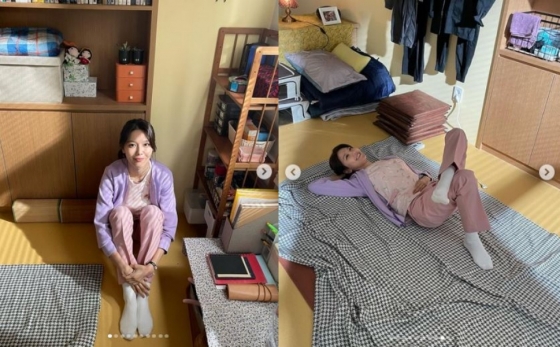 공개된 사진에는 최수영이 드라마 촬영을 위해 간호복을 입고 있는 모습이 담겼다. 최수영은 세트장이 편한 듯 이불 위에 누워 미소를 보였다.