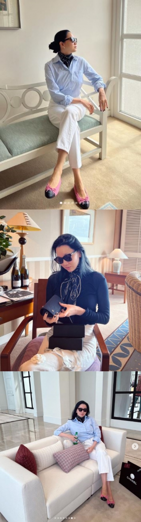 공개된 사진 속 장윤주는 선글라스를 쓰고 쇼파에 앉아 도도한 포즈를 취했다. 또 다른 사진에는 장윤주가 명품 쇼핑백을 옆에 두고 음료를 즐기는 모습도 보였다. 장윤주는 유명한 명품에 뒤지지 않은 특유의 고급스러운 분위기로 시선을 끌었다.