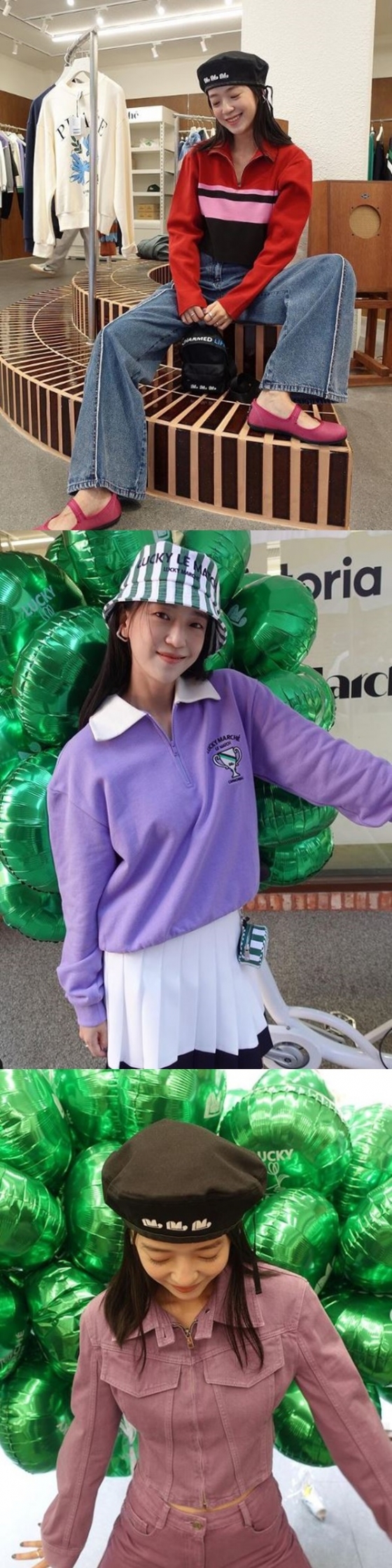 사진에는 김세은 씨가 한 의류 매장을 방문해 여러 착장을 입은 모습이 담겨 있다. 화려한 색상의 의상을 완벽하게 소화한 모습이 인상적이다.