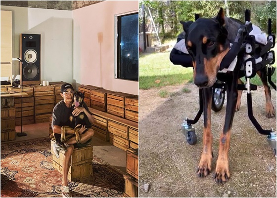 배정남은 22일 자신의 인스타그램에 휠체어를 탄 벨의 재활 훈련 영상을 게재했다.