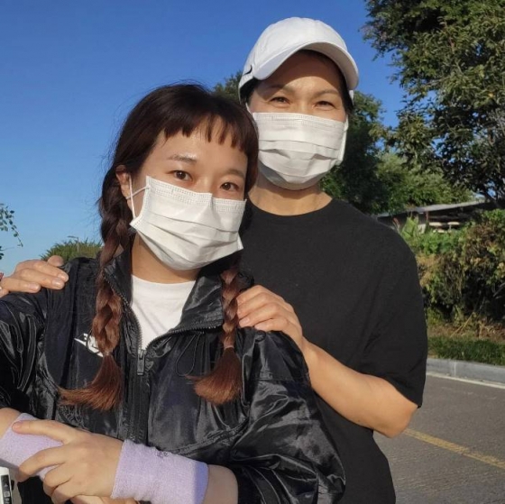 공개된 사진에는 홍현희가 남편 제이쓴으로 보이는 사람과 다정한 스킨십을 하며 운동에 나선 모습이다. 그러나 자세히 보면 제이쓴이 아닌, 제이쓴과 똑닮은 그의 어머니임을 알 수 있다.
