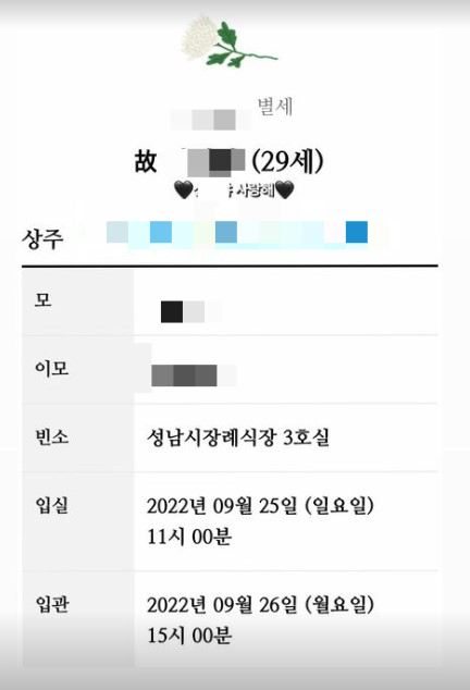 사진을 통해 리지는 근조 화환도 보내며 지인을 추모했다.