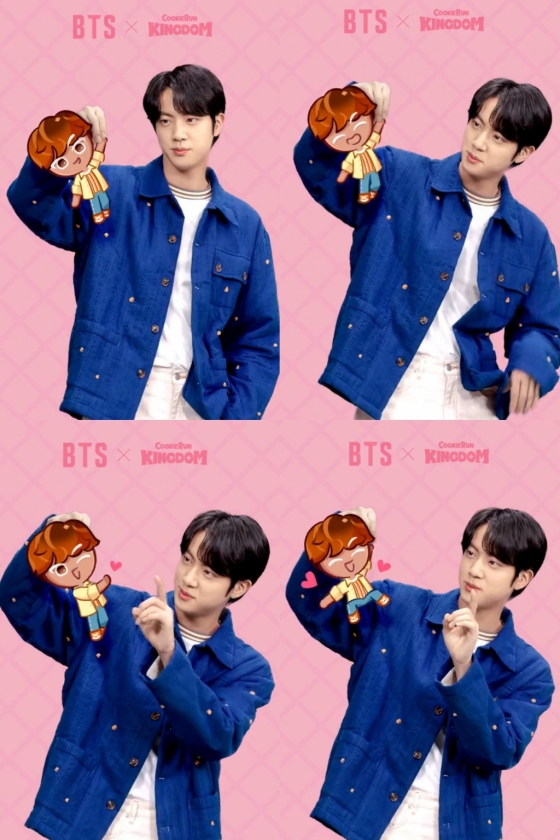 데브시스터즈의 '쿠키런: 킹덤'(Cookie Run: Kingdom)은 "오늘부터 쿠생 1일! #처음만나는_BTS쿠키 오늘의 주인공은?", "#진쿠키_등장. 저 보니까 행복해졌죠?"라는 문구와 함께 진과 진 쿠키가 함께한 사진을 게재했다.