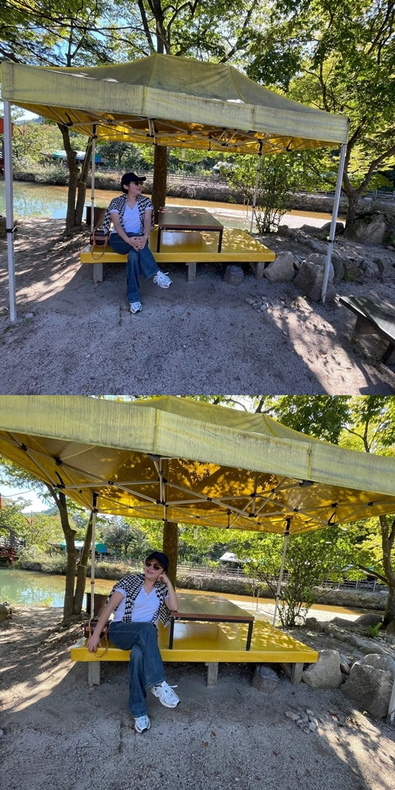 공개된 사진에는 나들이를 간 김현숙의 모습이 담겼다. 여유를 만끽하고 있는 그는 '신선놀음'을 하는 듯한 분위기다.