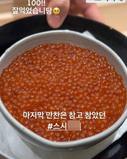 공개된 사진 속에는 전혜빈이 출산을 앞두고 먹은 음식이 담겼다. 고급스러워 보이는 생선알을 만찬으로 즐긴 것으로 보인다.