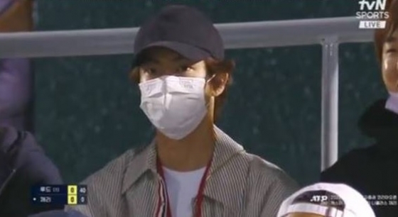 진은 9월 29일 서울 올림픽공원 테니스장 센터코트에서 개최된 2022 유진투자증권 남자프로테니스(ATP) 투어 코리아오픈 16강전 경기의 중계화면에 깜짝 등장, 시선을 집중시켰다.