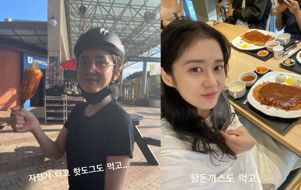 장나라는 1일 자신의 인스타그램에 "커피도 마시고 자전거 타고 핫도그도 먹고 왕돈가스도 먹고 열심히 일도 하고 잘 지내고 있어요"라는 글과 함께 여러 장의 사진을 공개했다.