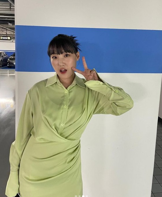 공개된 사진 속에는 이은지가 앞머리를 내린 책 연두색 셔츠 원피스를 입고 손으로 브이 모양을 한 모습이 담겼다. 깜찍함이 돋보이는 헤어스타일과 상큼한 컬러감을 완벽하게 소화해 눈길을 끌었다.