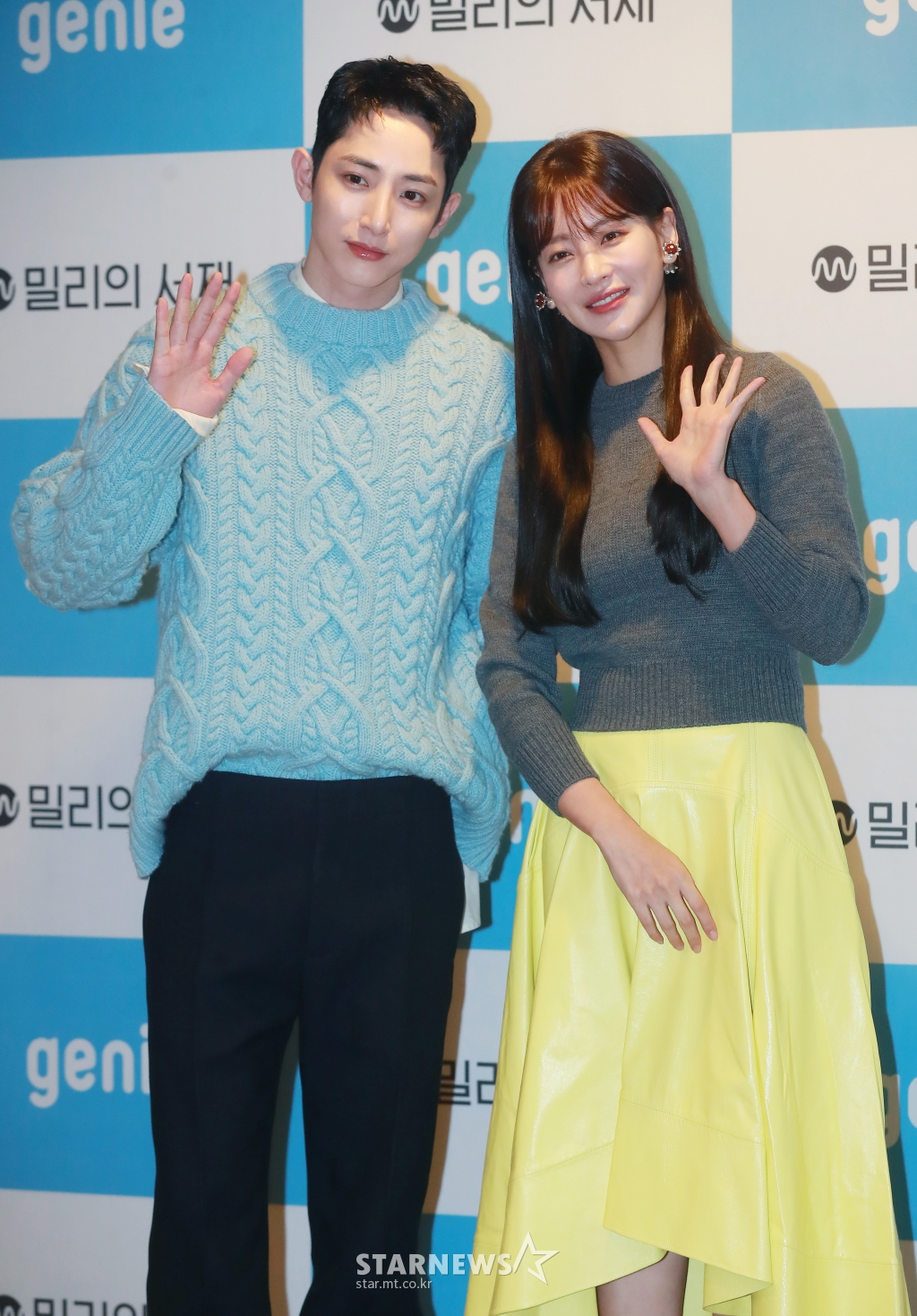 배우 이수혁, 오연서가 6일 오전 서울 강남구 지니뮤직에서 진행된 AI 오디오 드라마 '어서 오세요, 휴남동 서점입니다' 제작발표회에 참석해 포즈를 취하고 있다.
