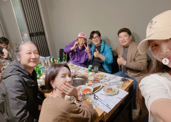 안혜경은 "성국오빠 결혼 전 불청 언니오빠들과 식사자리~ 성국오빠!! 정말 진짜 축하드립니다 #불청#불타는청춘#언니오빠들#보고싶었어요#사진다못찍어아쉽"이라는 글과 함께 사진을 게재했다.