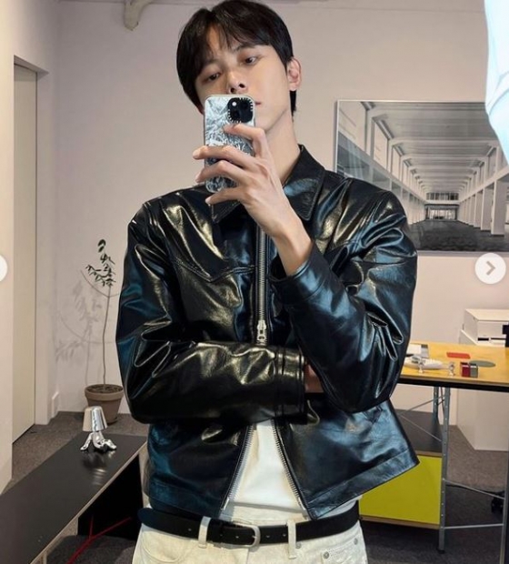 공개된 사진 속 주우재는 가을 분위기가 물씬 드러나는 가죽 자켓을 입은 채 거울 앞에서 포즈를 취하고 있다. 휴대폰으로 가려질 법한 작은 얼굴과 넘사벽 비율이 보는 이들의 시선을 사로 잡는다.