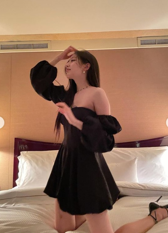 공개된 사진에는 침대에서 여러 포즈를 취한 정예인의 모습이 담겼다. 특히 어깨와 가슴 라인이 과감하게 드러낸 그는 치명적인 매력을 뽐냈다.