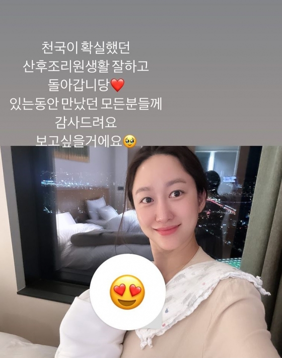 12일 전혜빈은 자신의 인스타그램에 "천국이 확실했던 산후조리원 생활 잘하고 돌아갑니다"라는 글과 함께 사진을 공개했다.